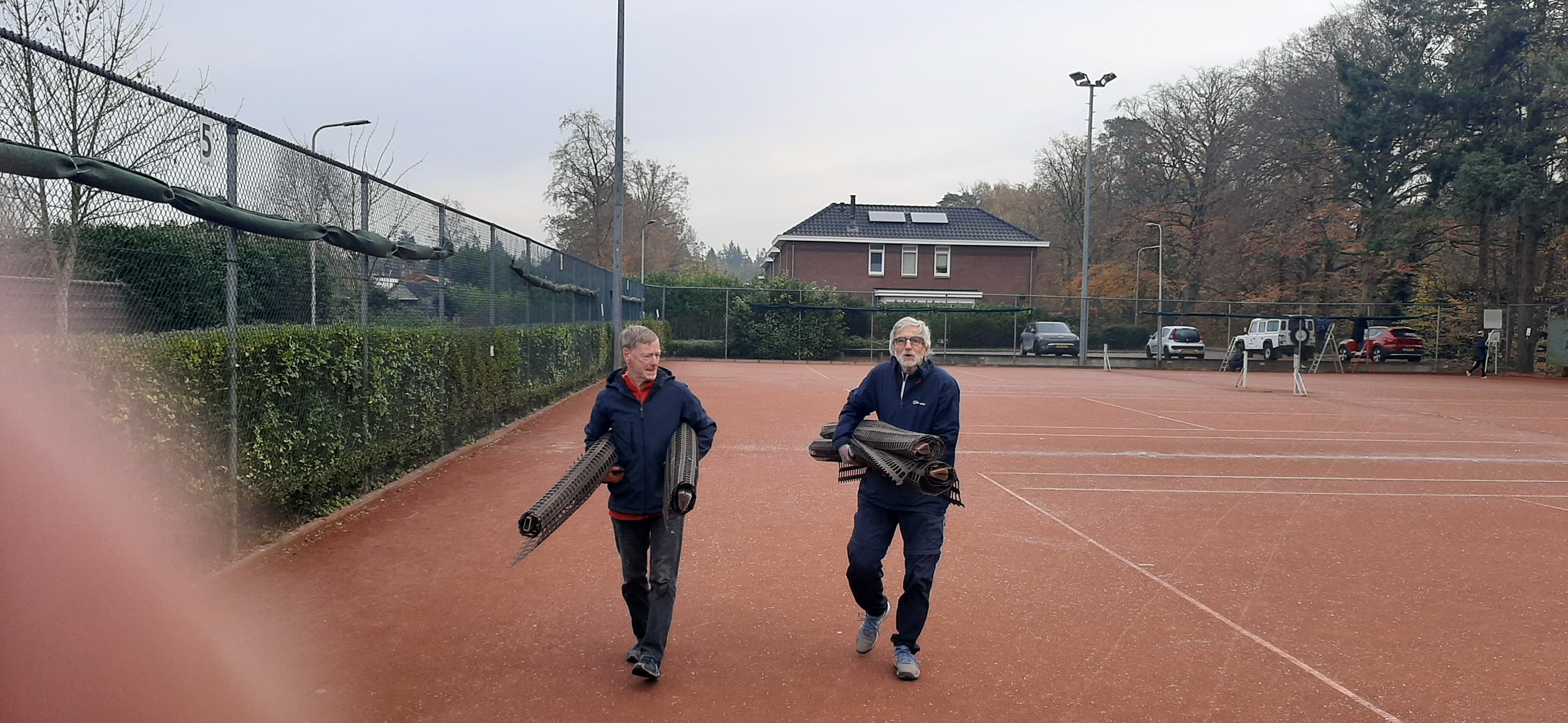 Winterklaar maken tennispark.